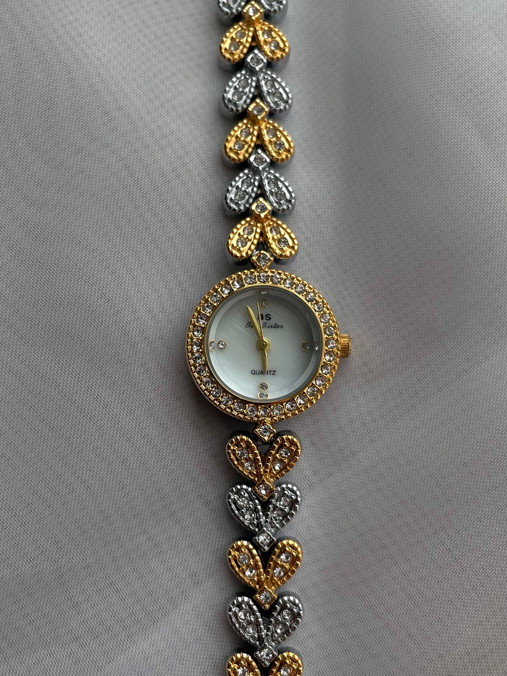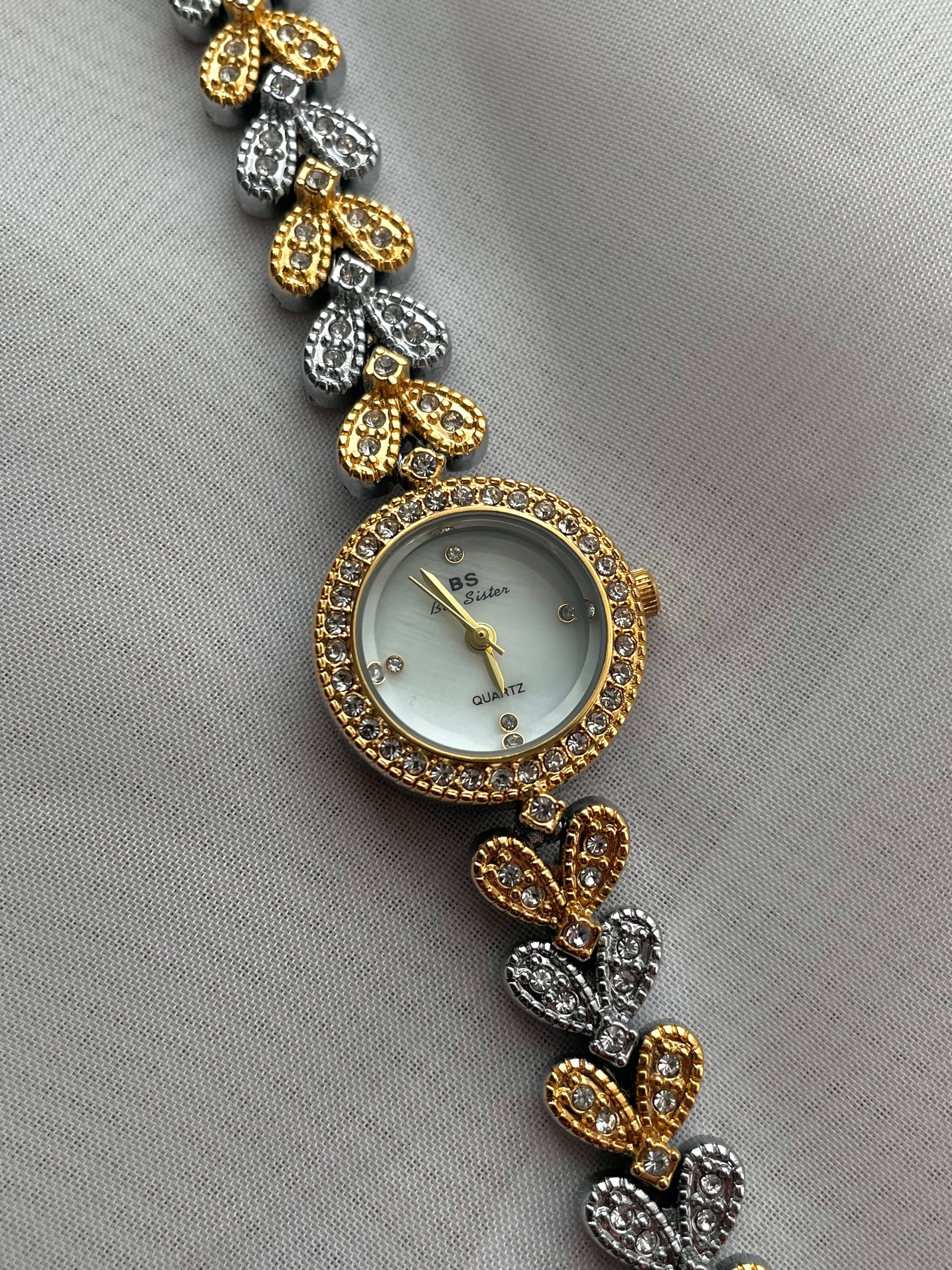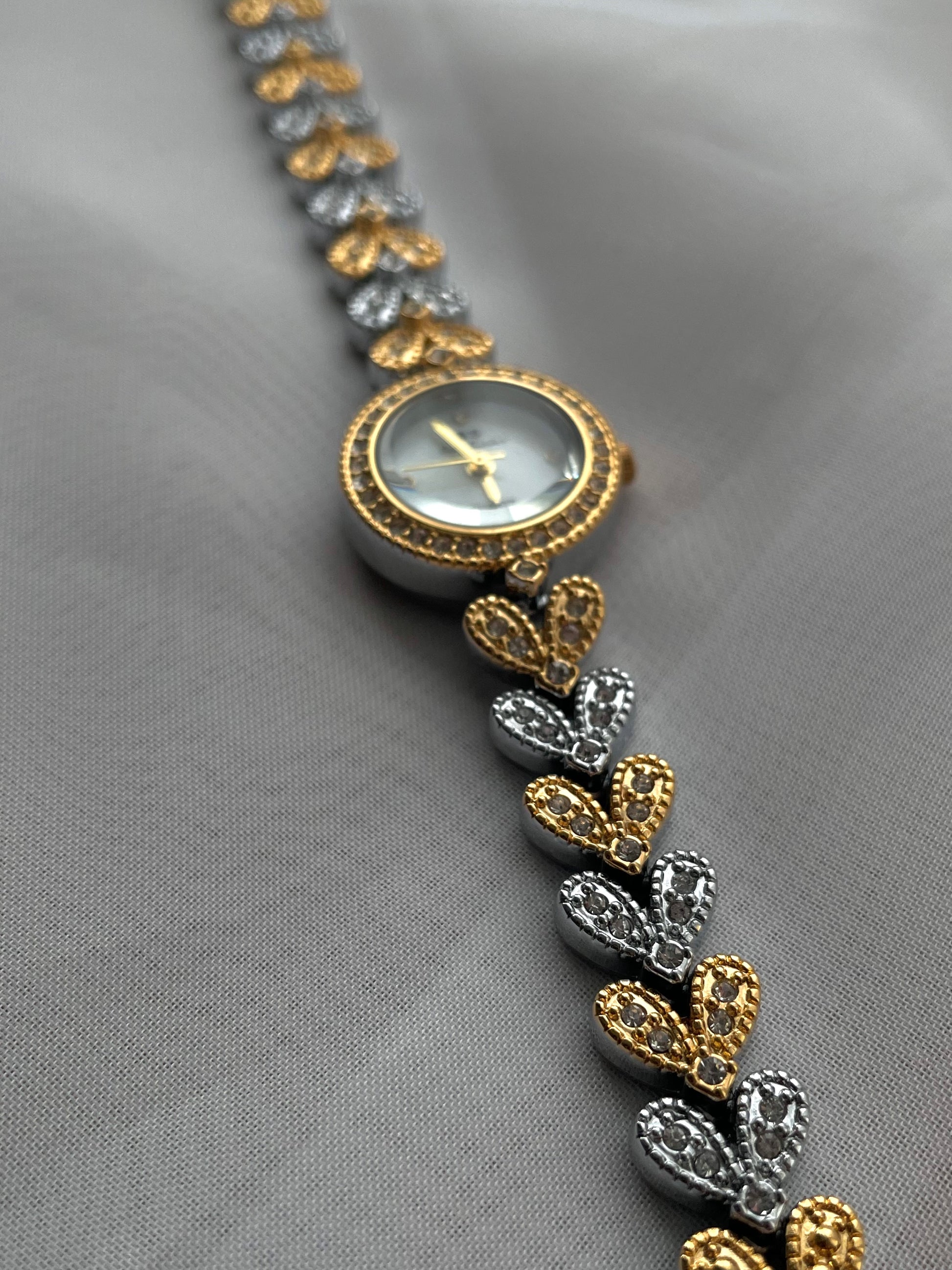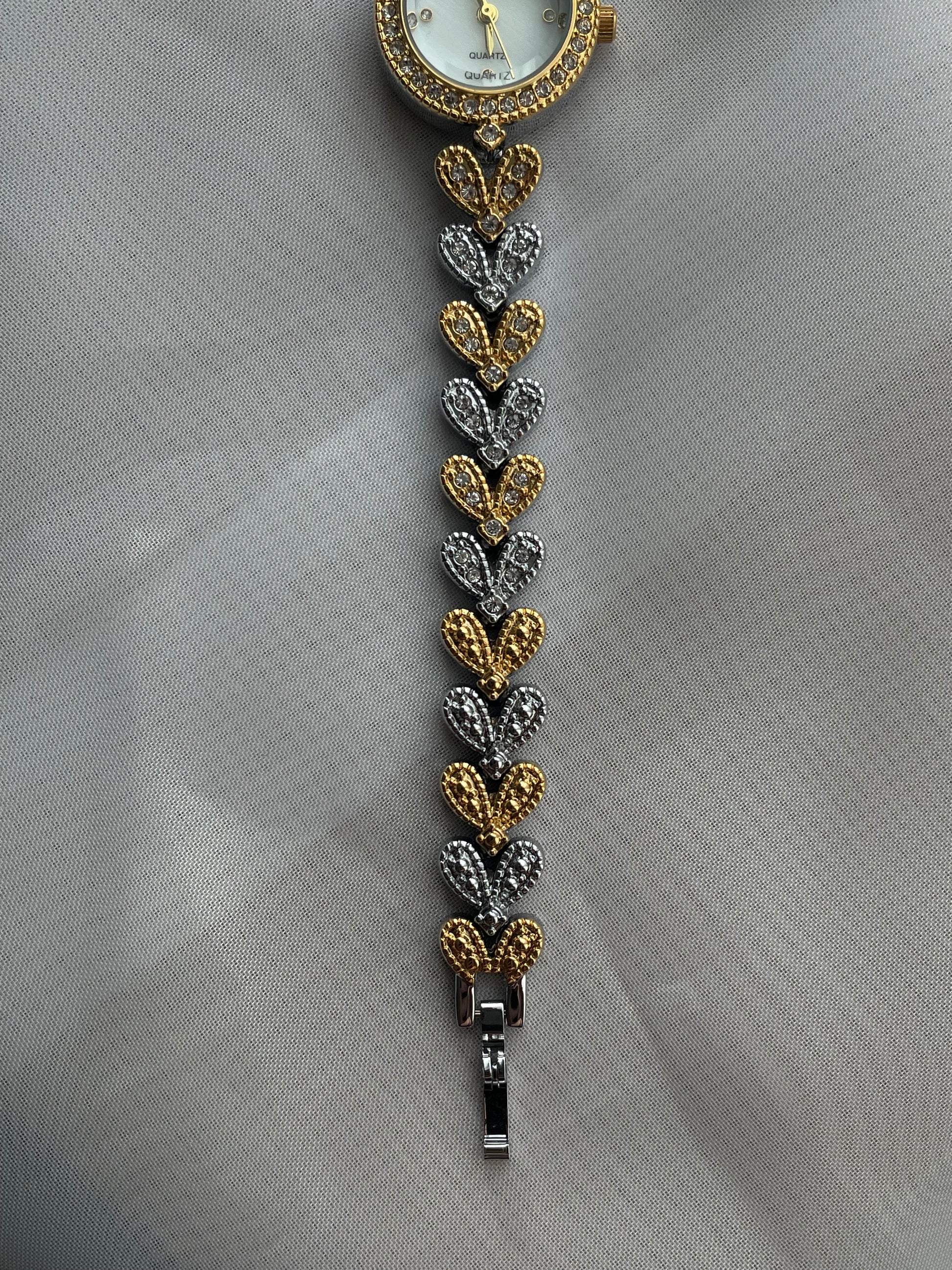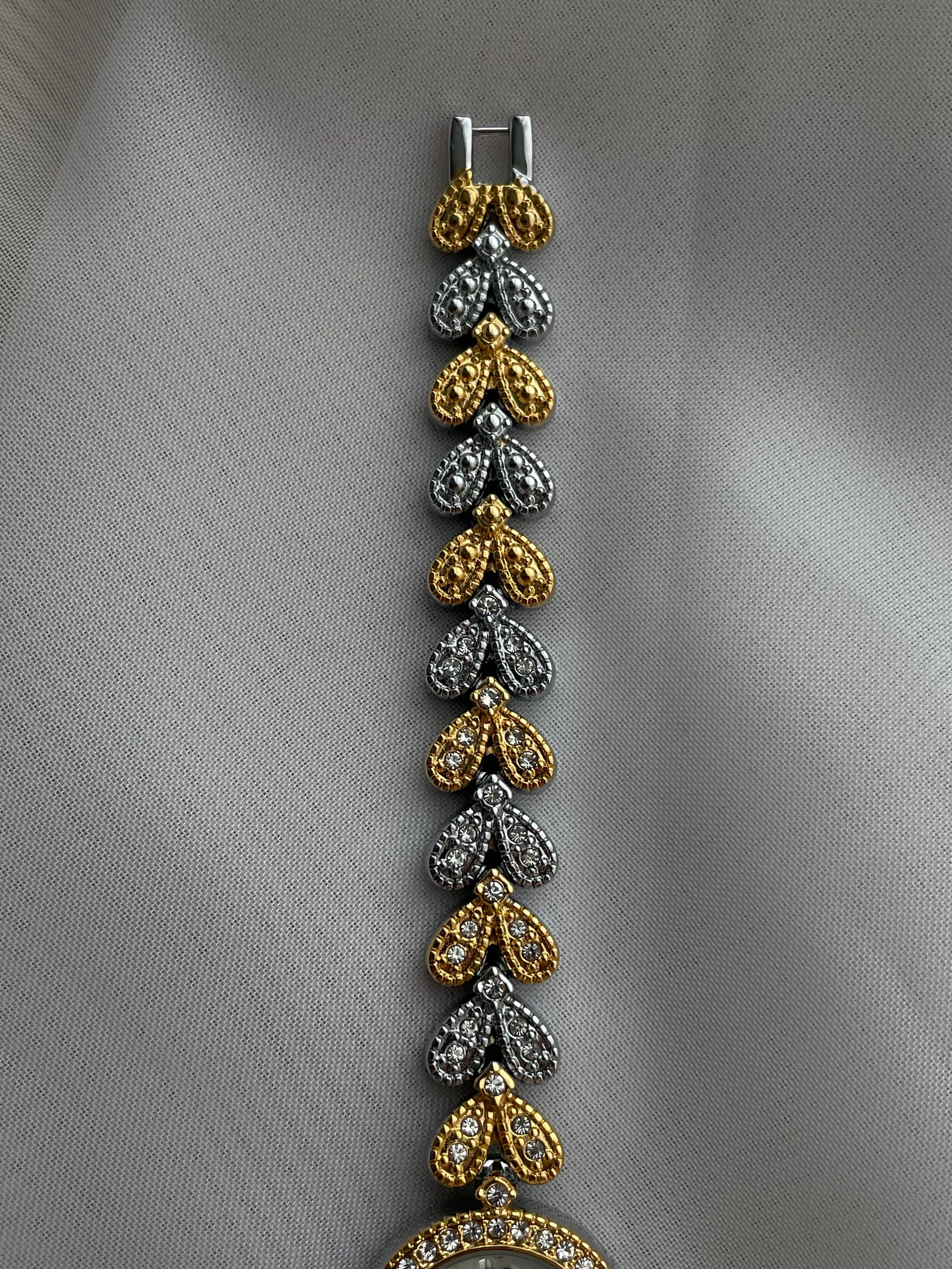 Two-toned Rhinestone bracelet watch, Cocktail Watch, adjustable luxury bolo bracelet, Quartz watch, stainless steel