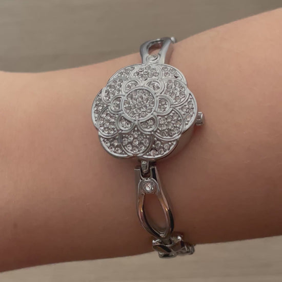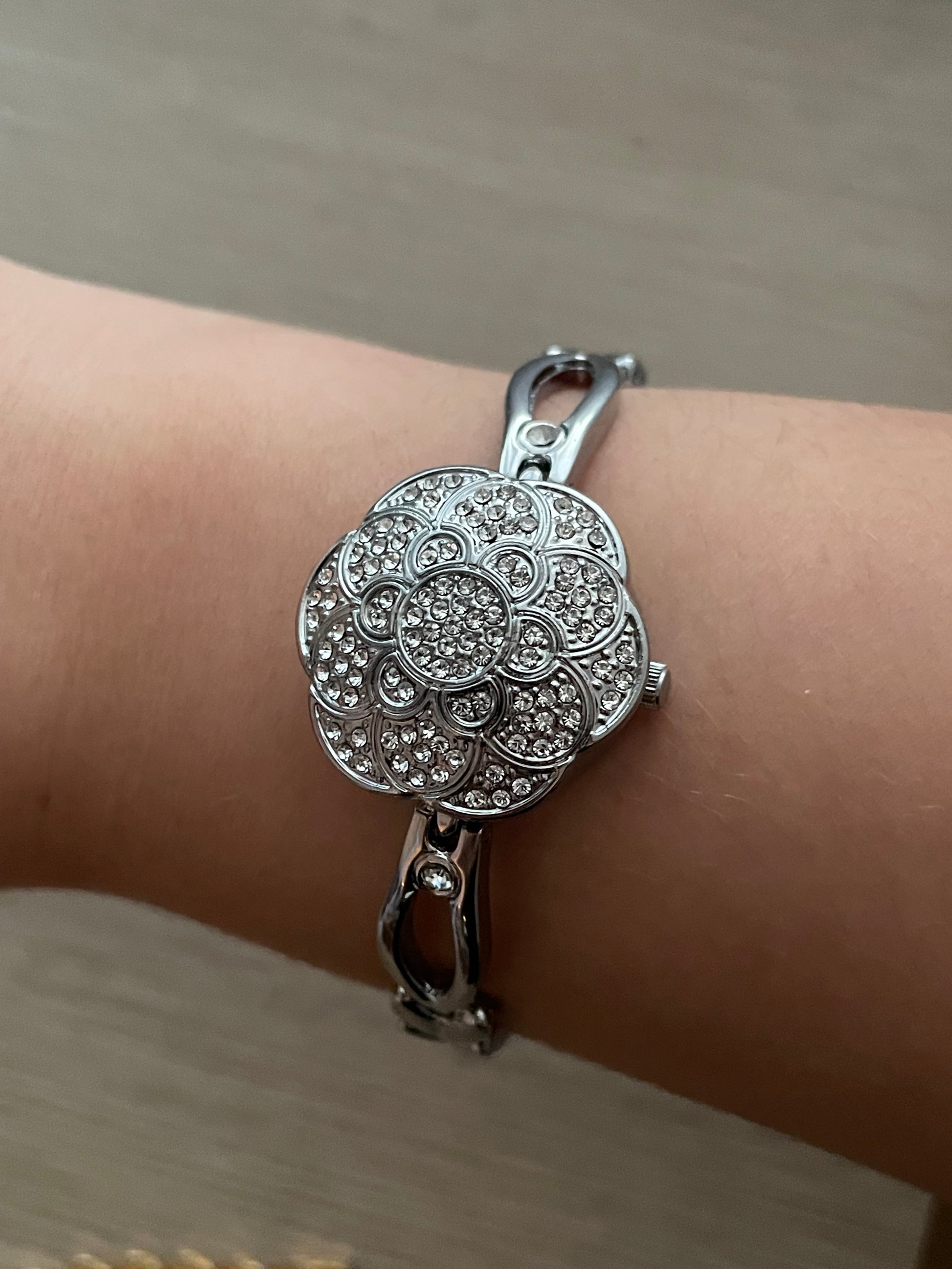 Silver Gold Rhinestone watch, Cocktail Watch, adjustable luxury, Quartz watch, stainless steel