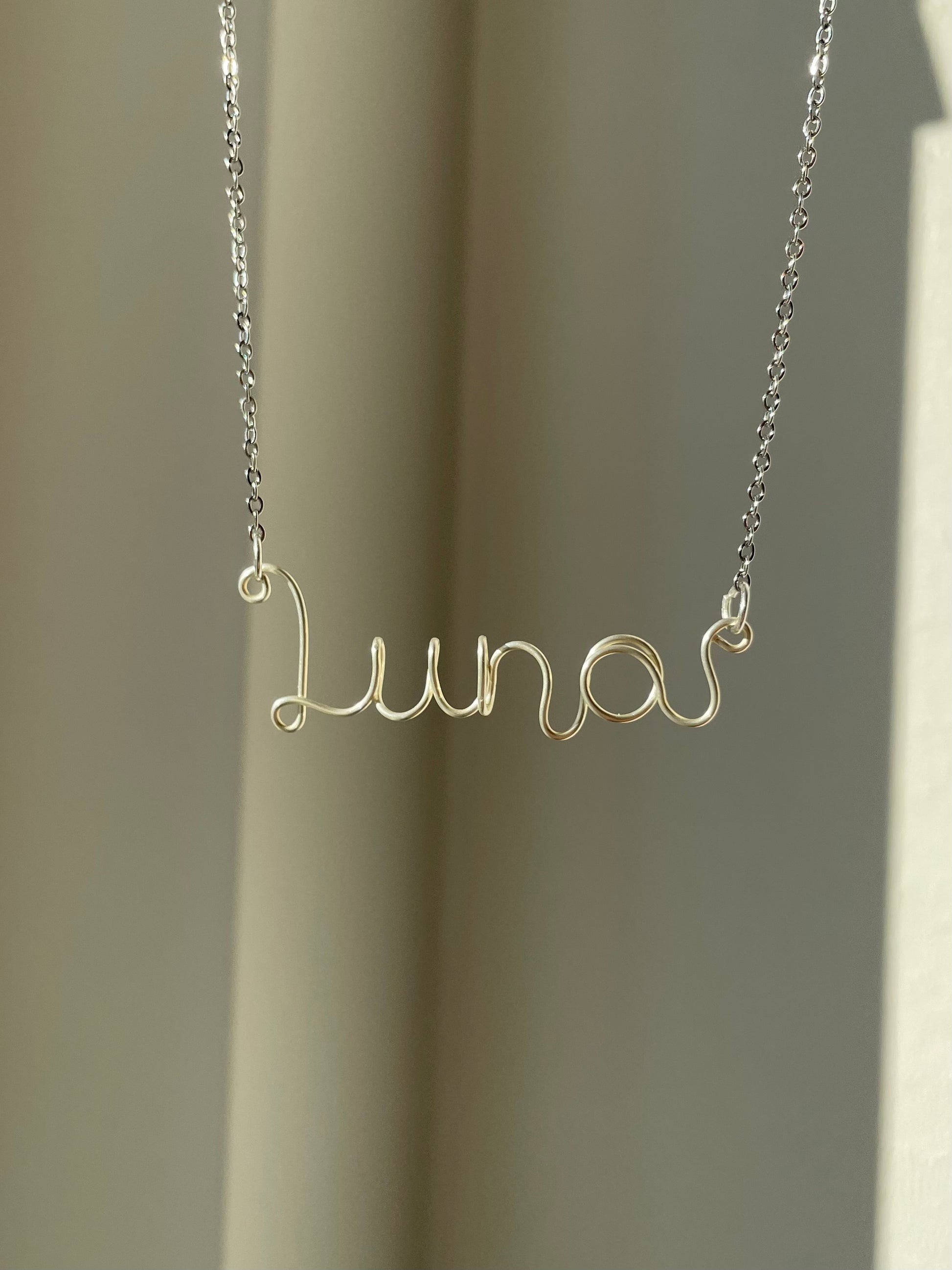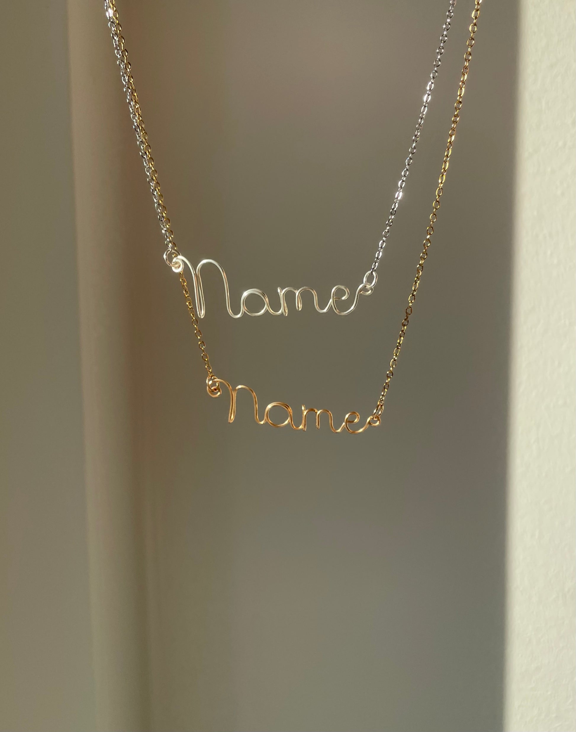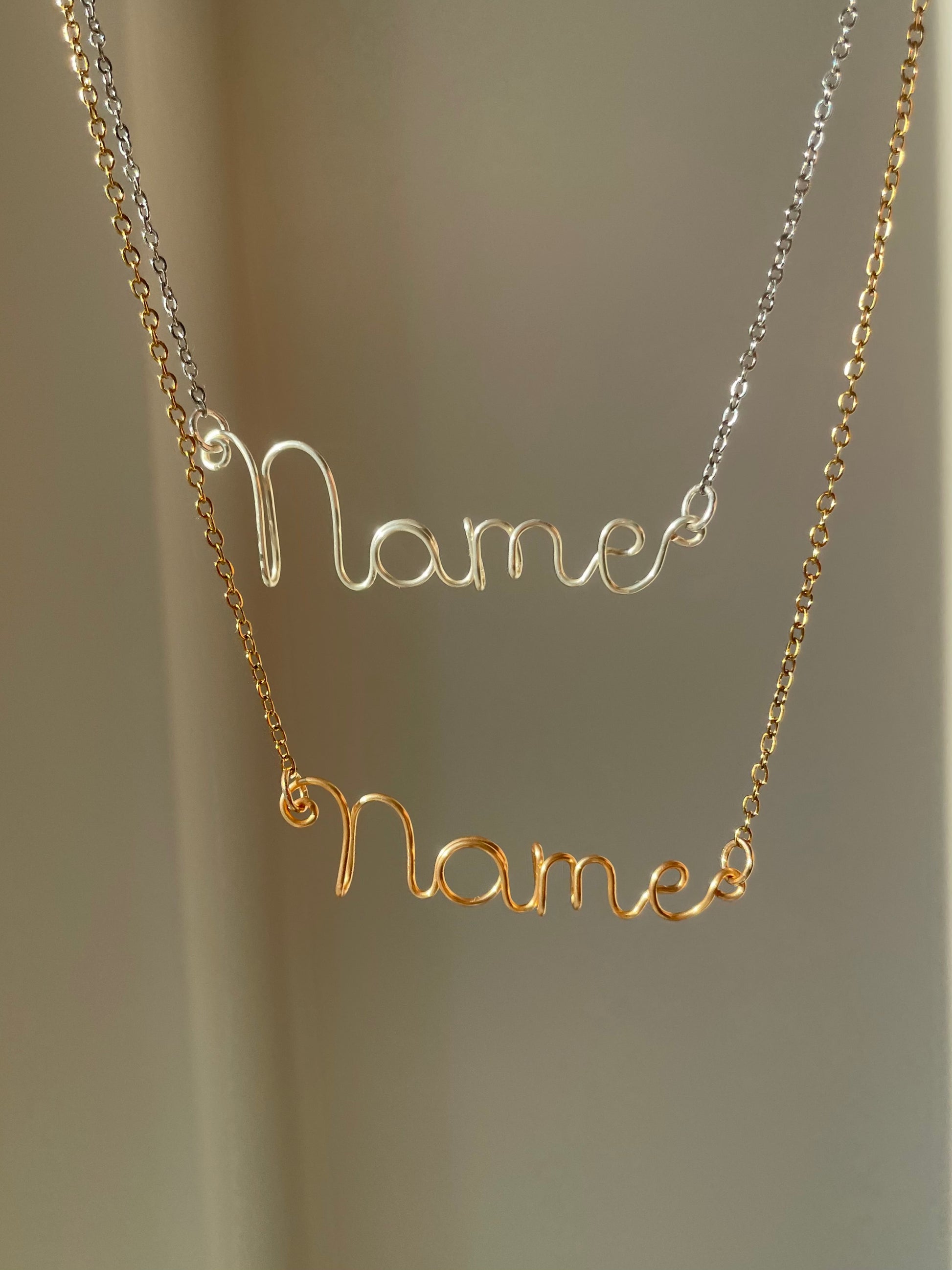 Carry your name or someone special’s close to your heart with this beautifully handcrafted Custom Name Necklace. Each piece is carefully shaped from high-quality copper wire, forming your chosen name in elegant cursive script. The pendant is paired with a sleek stainless steel chain, giving it a timeless and durable finish.